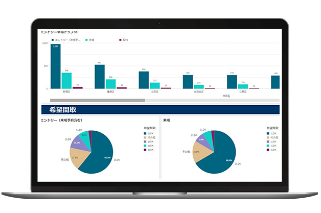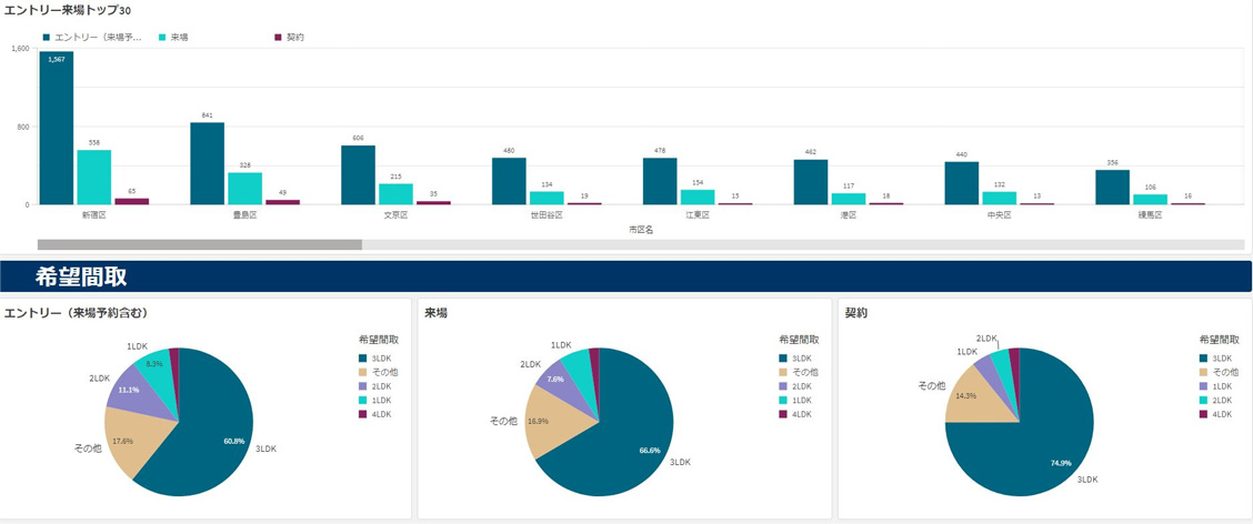 過去販売物件の集客媒体、集客ターゲット属性を簡単に可視化可能!