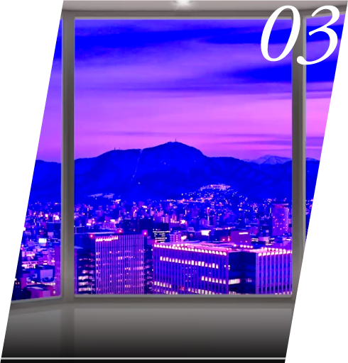 プロジェクションマッピングを使い、臨場感あふれる眺望映像をモデルルームで体感。各階層からの眺望や、時間帯による景色の変化も現地で見ているかのような感覚で擬似的に体験いただけます。